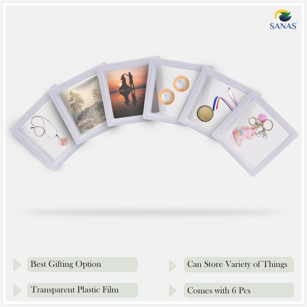 Sanas Floating Display Frame Acrylic White Shadow Box(6Pcs)