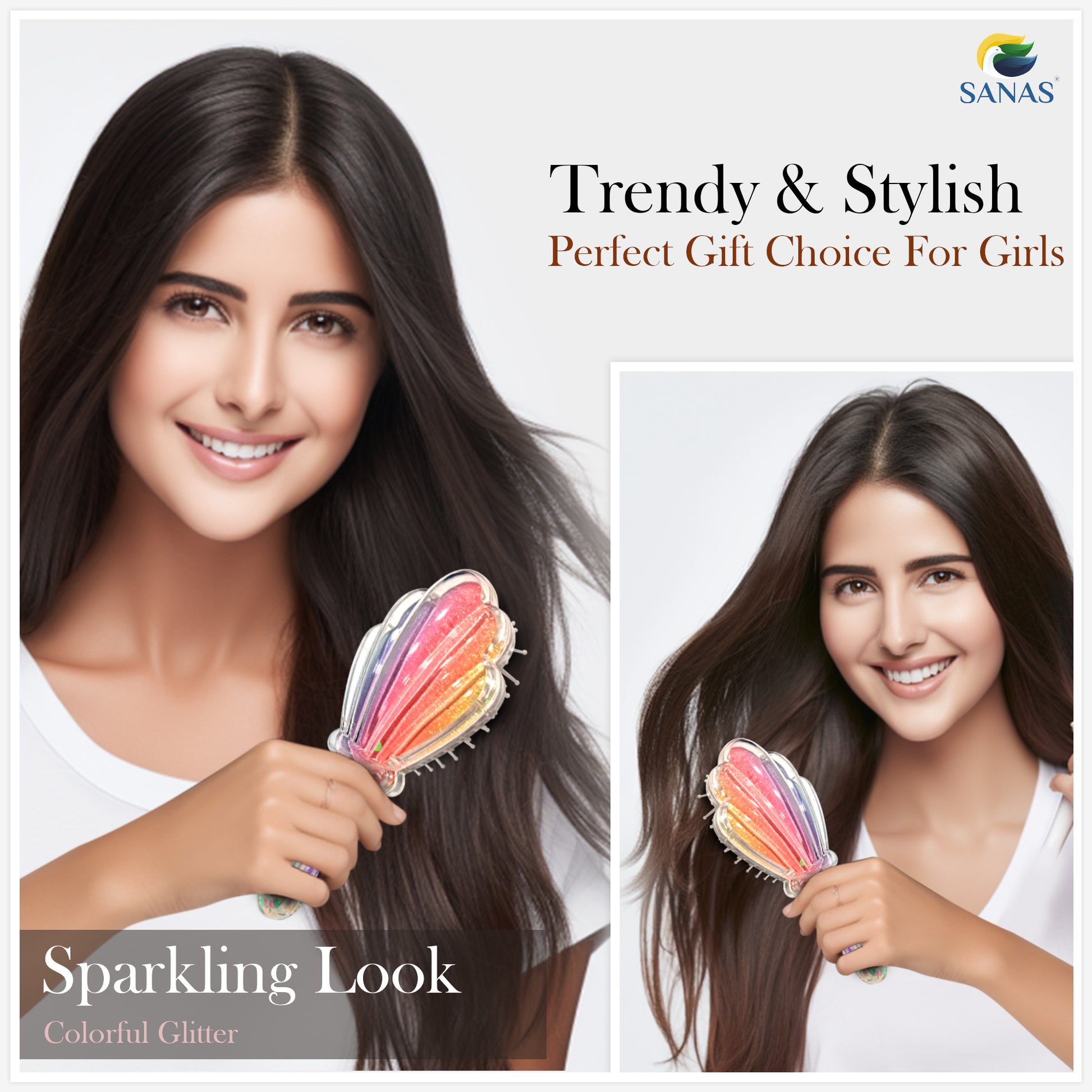 Sanas Glitter Hair Paddle Brush - 1Pc