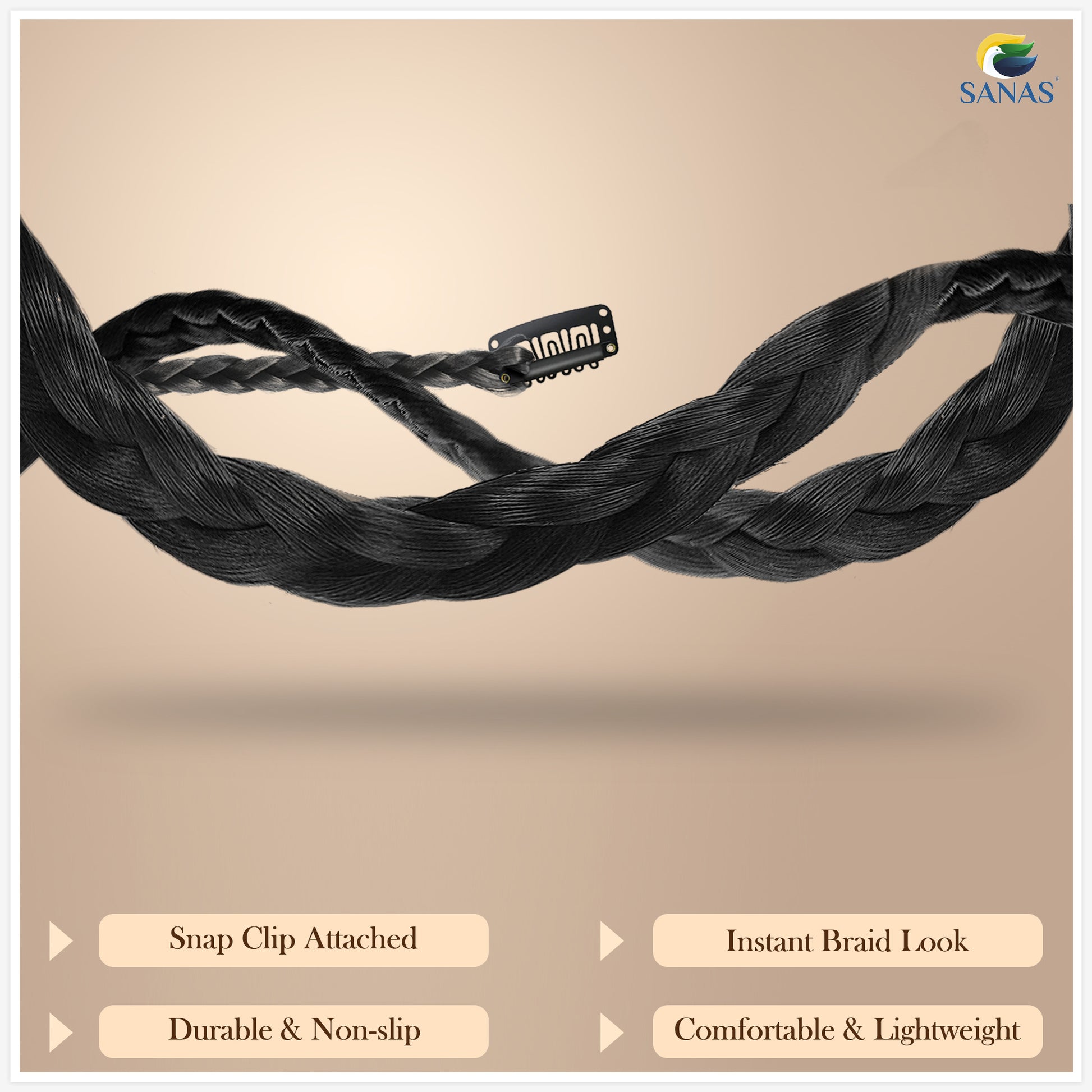 Sanas Hair Black Braid Extension for Women - 1Pc