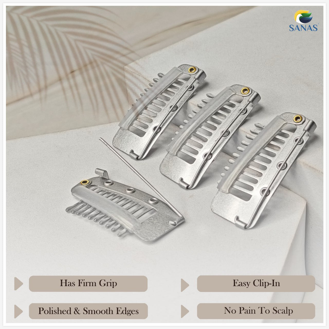 Sanas Hair Extension Clips For Women 4 Pcs Dupatta Pin For Head & Hijab Hair Pins Chunni Clips (Sliver)