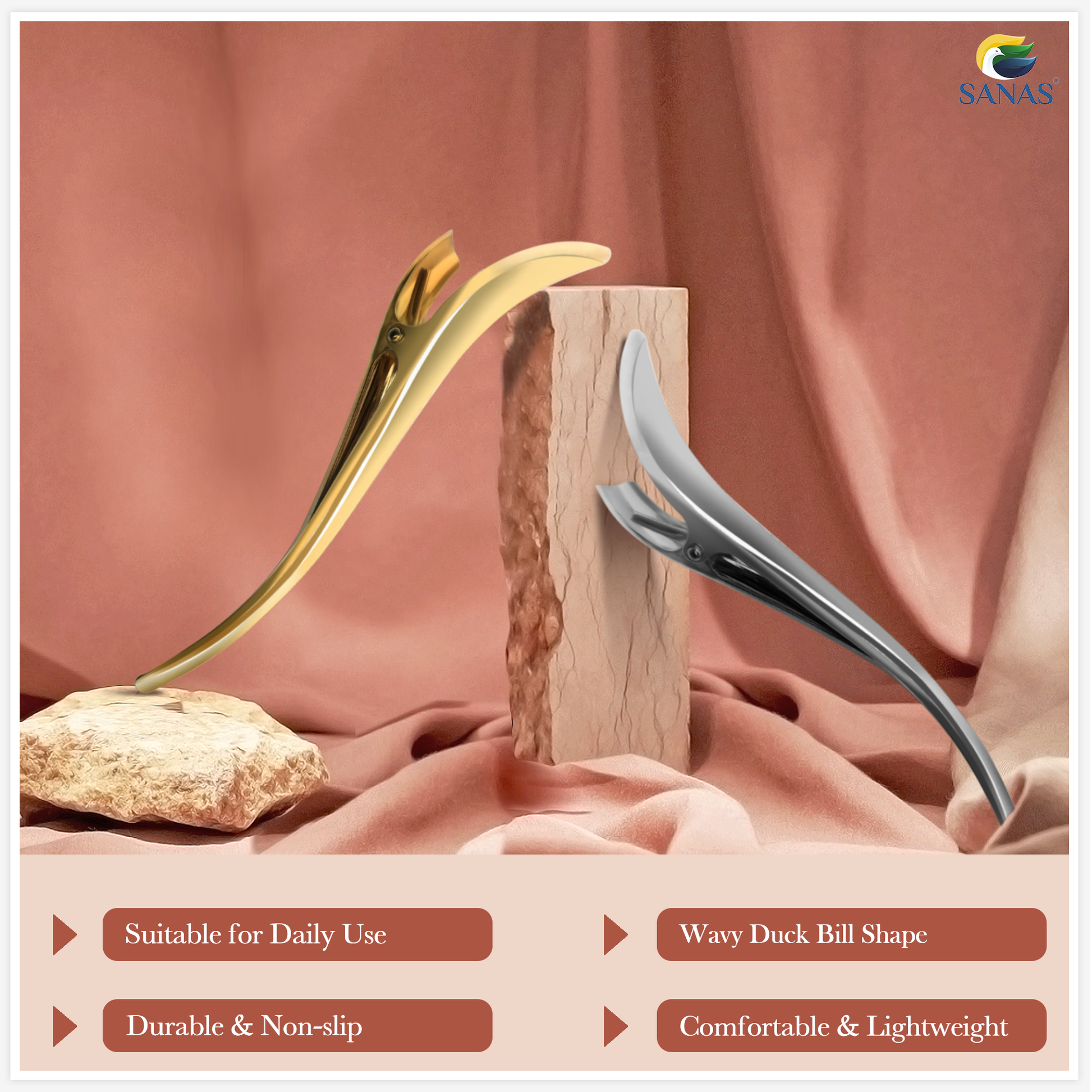 Sanas Wavy Duck Bill Clip - 2Pcs