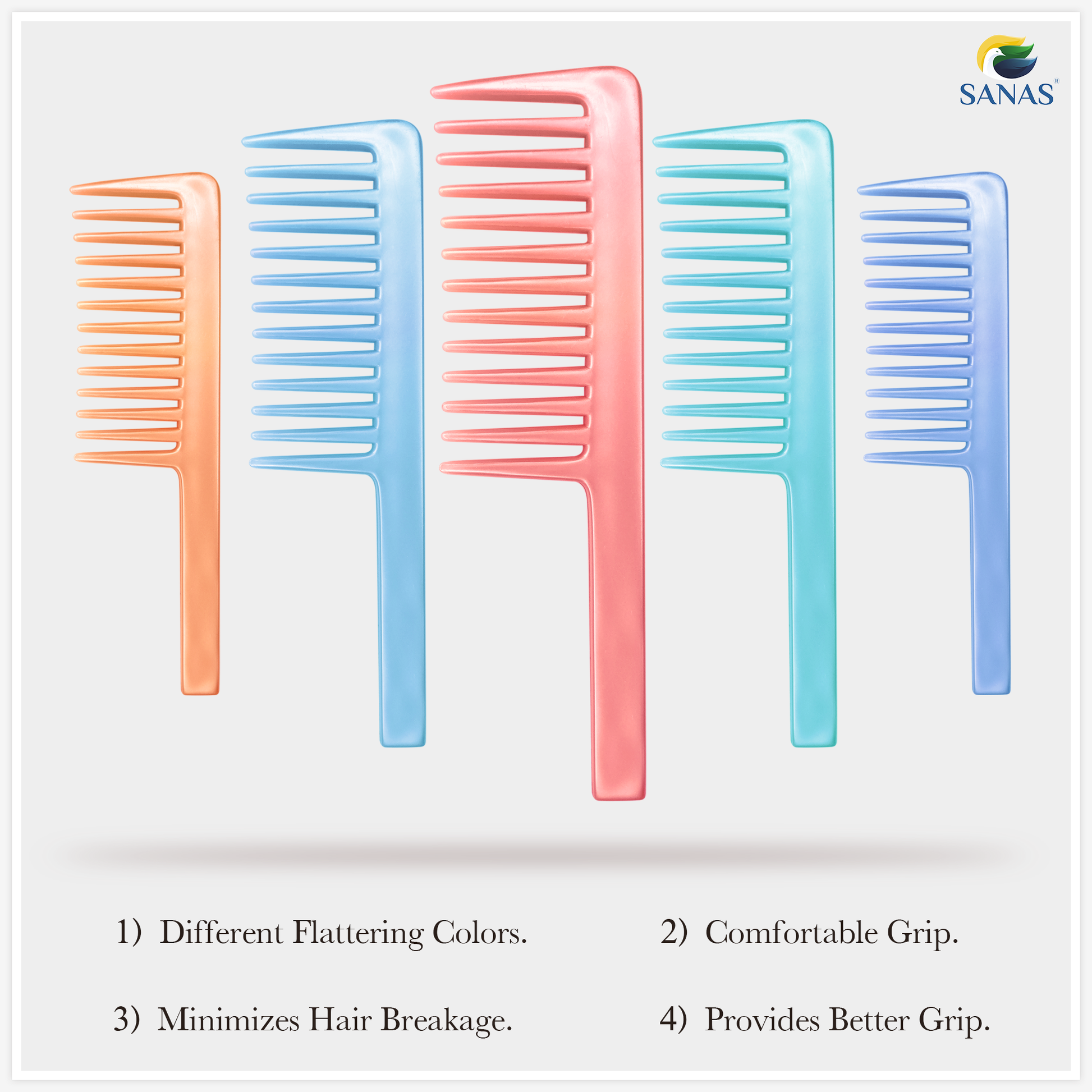 Sanas Wide Teeth Shower Shampoo Comb 2Pcs Assorted Colours