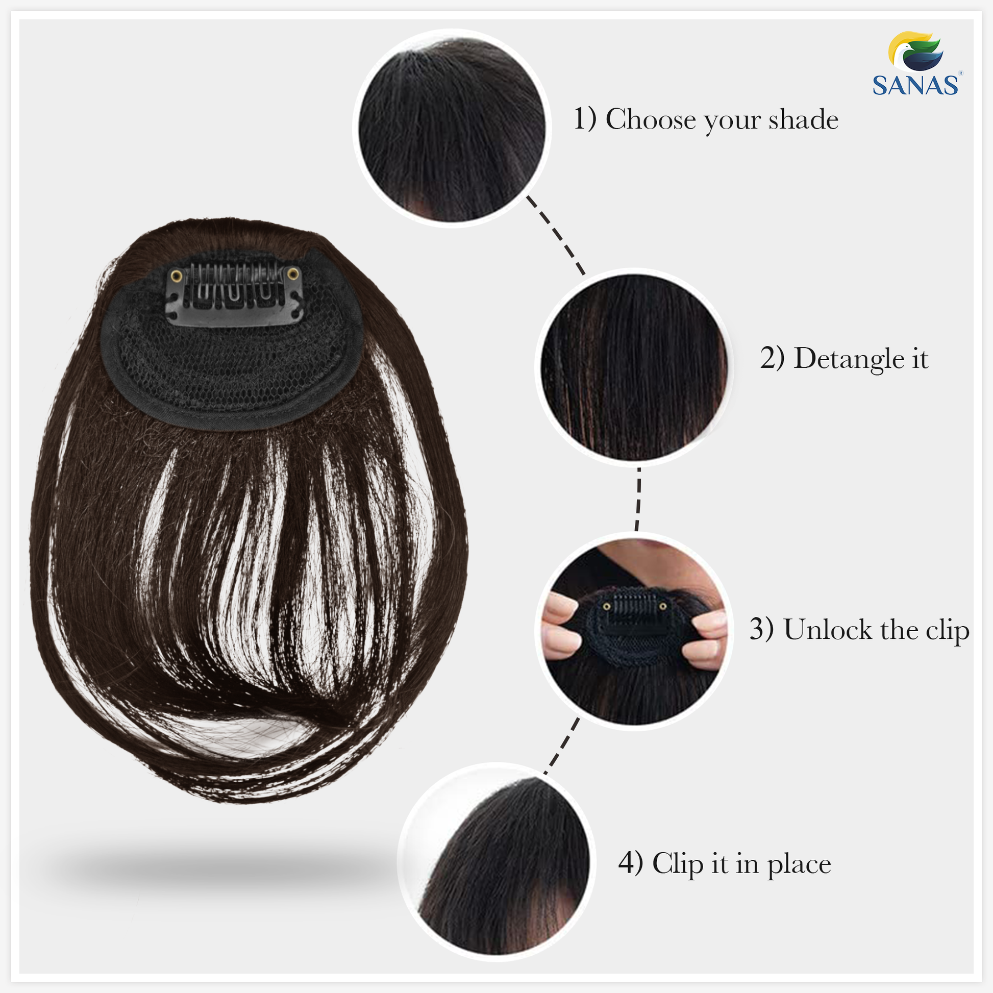 Sanas Brown Hair Bangs Extension - 1Pc