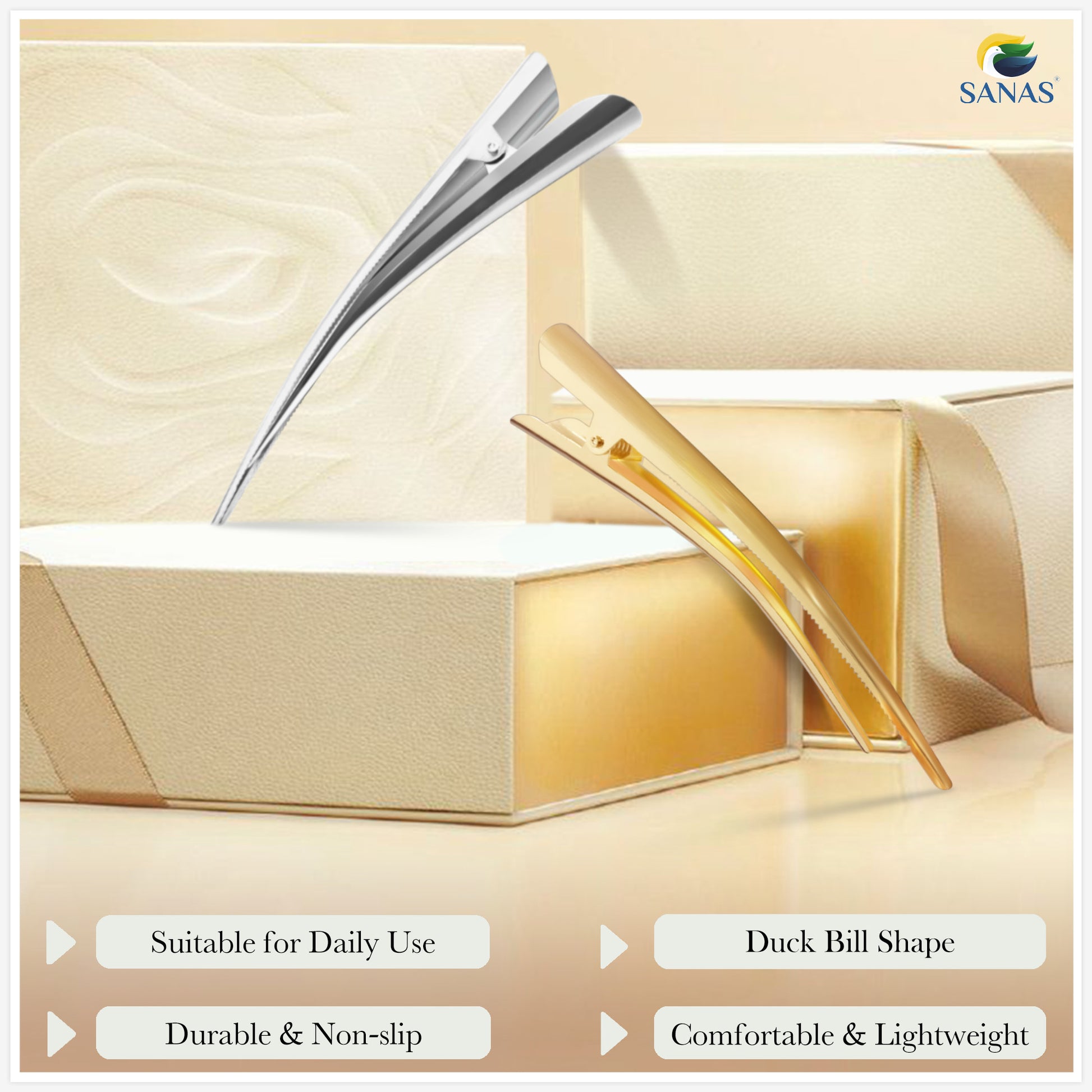 Sanas Metal Duck Bill Hair Clip - 2Pcs